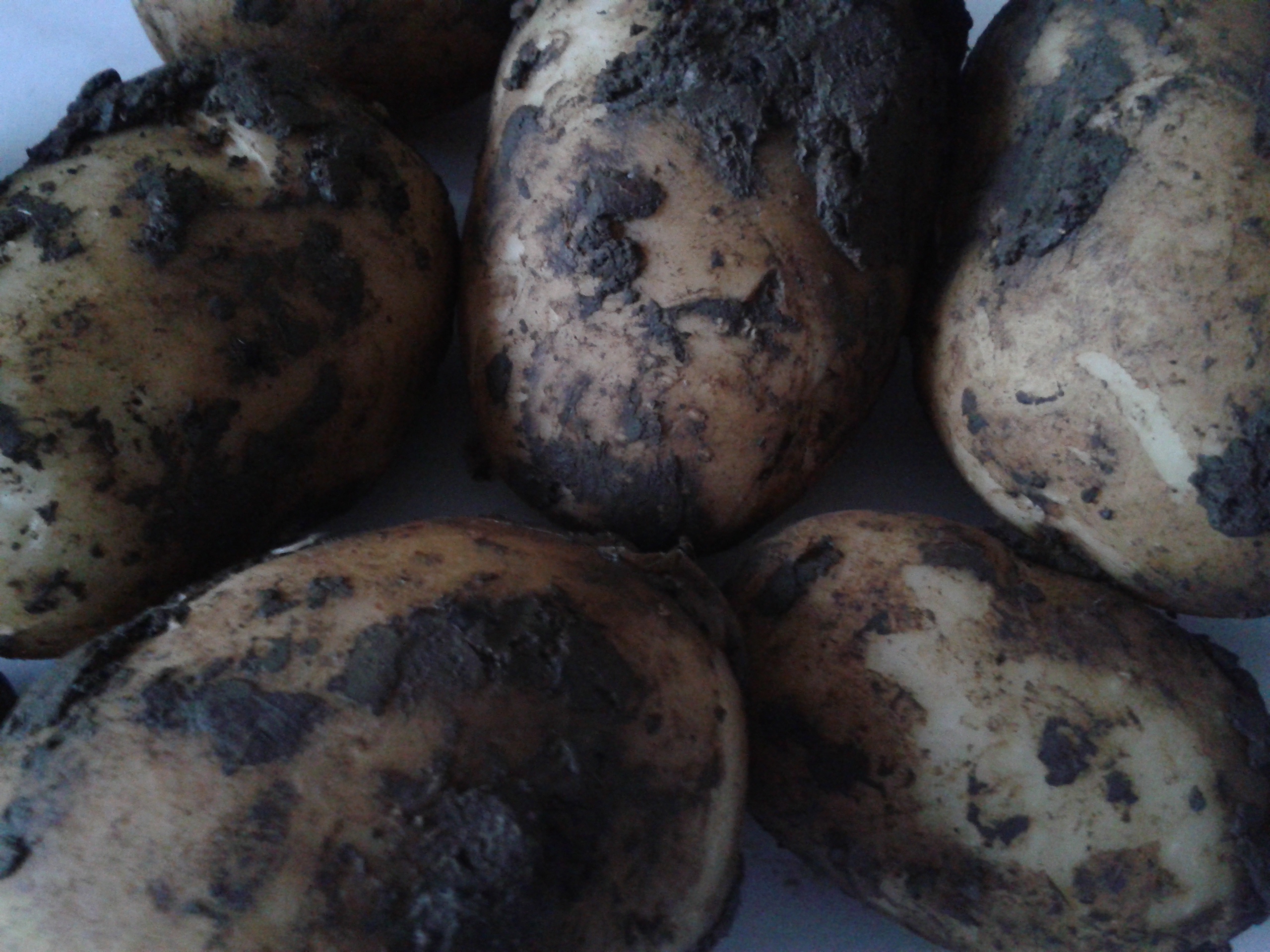 Fast forward thirty years and more. We’re on the allotment. Digging up what’s left of the early potatoes. The woodlice have had a field day with all the rain. We loosen the plants with the trowel. My grandson pulls them up. After one or two he’s got the idea. Can’t be fussed waiting for us any more. He yanks at the next plant. It’s loosely rooted. He flies backwards into a heap of mud. It’s a soft landing. A messy one though. He rinses his hands in the water butt and carries on.